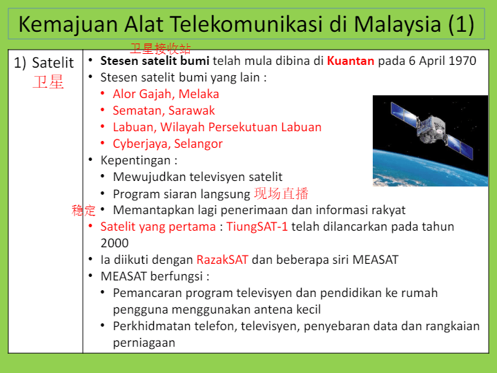 Penerokaan dalm sistem telekomunikasi memasuki satu dimensi baharu dengan pembinaan stesen satelit bumi pertama di kuantan (pahang) pada 6 april 1970. Dalam bab ini kita akan menilai sejauhmana kepentingan ❖ menerangkan kemajuan alat . View 6.docx from aa 16.2 kemajuan alat telekomunikasi di malaysia satelit penerokaan dalam sistem telekomunikasi memasuki satu dimensi baharu dengan . Play this game to review geography. 6.2 kemajuan alat telekomunikasi di malaysia 6.2 kemajuan alat telekomunikasi di malaysia. Di akhir pembelajaran, murid dapat. Penerokaan dalam sistem telekomunikasi memasuki satu dimensi baharu dengan pembinaan stesen ______ pertama di kuantan, . 6.2, kemajuan alat telekomunikasi di malaysia . Geografi tingkatan 2 (nota 16). Pada abad kini, perkembangan dan penumpuan industri komunikasi dan multimedia menyebabkan pembangunan.